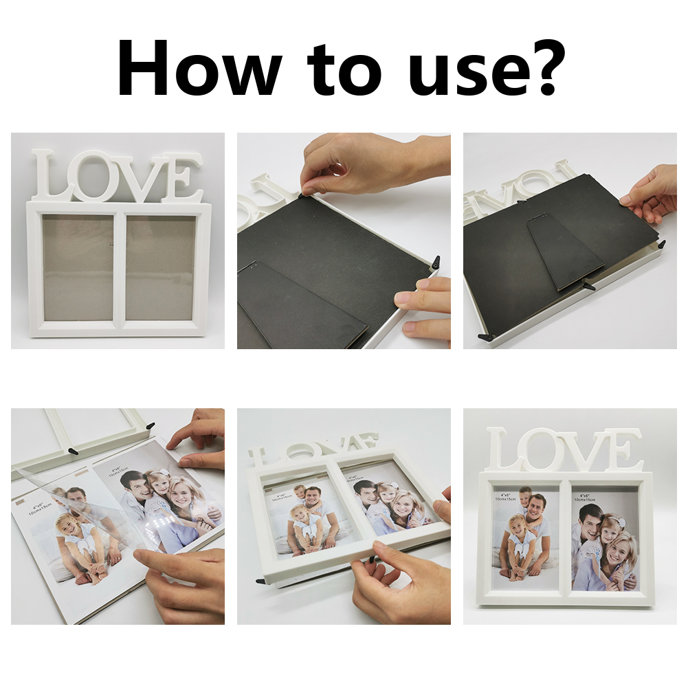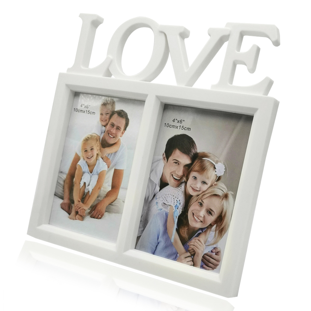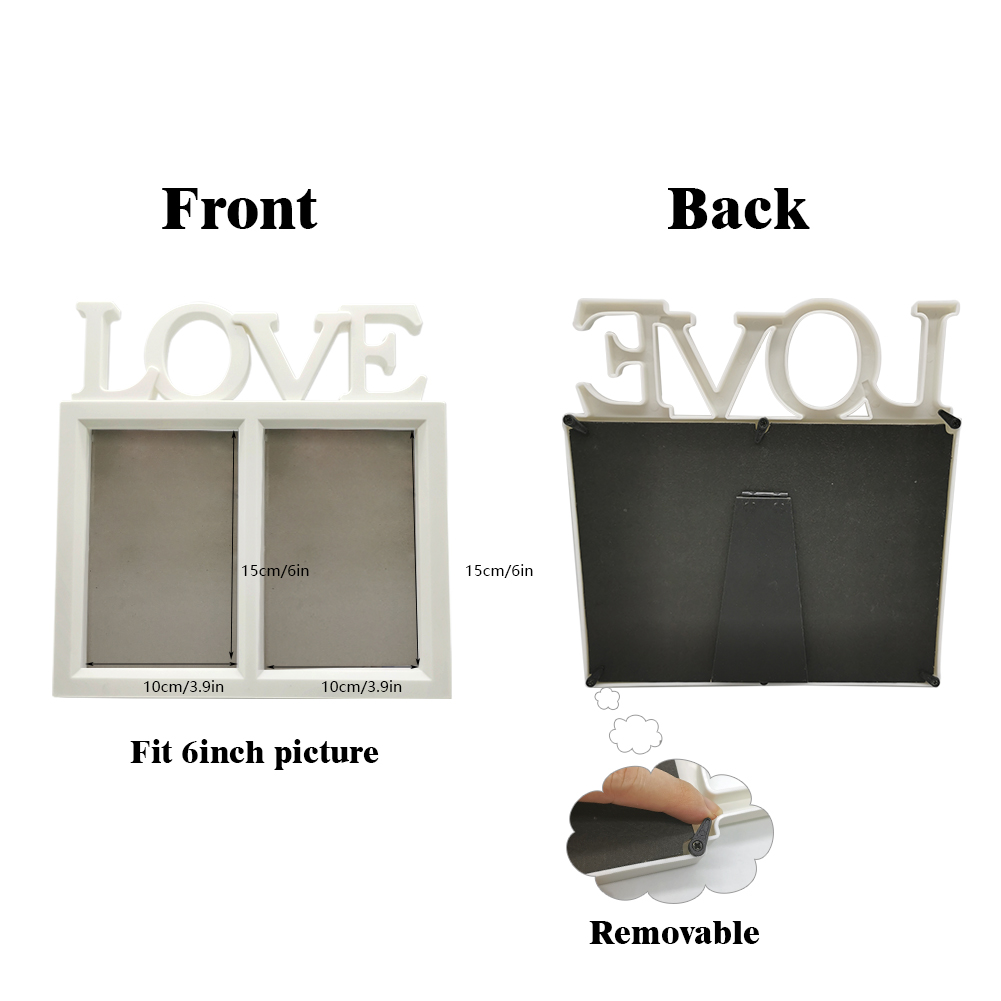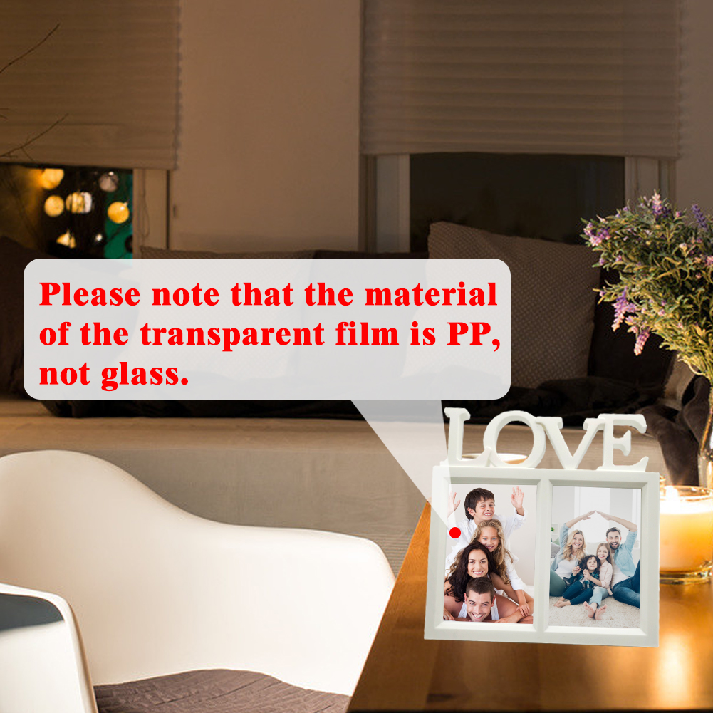 ♥ Love Picture Frames 6x4: Note: For kids' safety reason, it is not made of glass, but made of clear plastic film. Displaying double photo frame 6x4 is with letter LOVE on the top, simple but full of love, great for holding personal photos, wedding photos, family photos, best friend photos etc., showing and keeping the significant or honey moment.