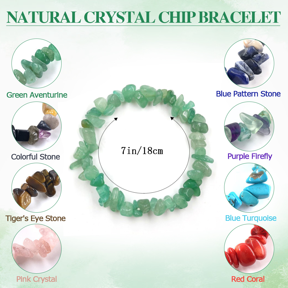 💖 Stretch Bracelets: Each gemstone stretch bracelet has a stretch design that stretches between 6.3-7.5 in/16-17.78 cm ;And crystal bracelets for women and men fit most wrists, the adjustable gemstone bracelet is comfortable to wear, allowing you to put crystal bracelet on and take crystal bracelet off easily.💖 Natural and Versatile Crystal Bracelet: These colorful crystal chip bracelets are made of irregular crystal stones, beautiful and natural chakra bracelets. Gemstone bracelets help you to freely match your clothes according to different occasions, each crystal bracelet color can express your own personality.💖 Healing Crystals Bracelet: These healing crystal bracelets are good for your body and are suitable for yoga, meditation, prayer and healing; The mood bracelet has an inspiring effect and will keep you in a good mood throughout the day.💖 Ideal Gift: This crystal bracelet set is perfect for Valentine's Day, Mother's Day, Christmas, birthday party, dinner, prom, wedding, travel, graduation and many other occasions. The chakra bracelets are the ideal gift for your lover, friends, family, classmates and yourself. -