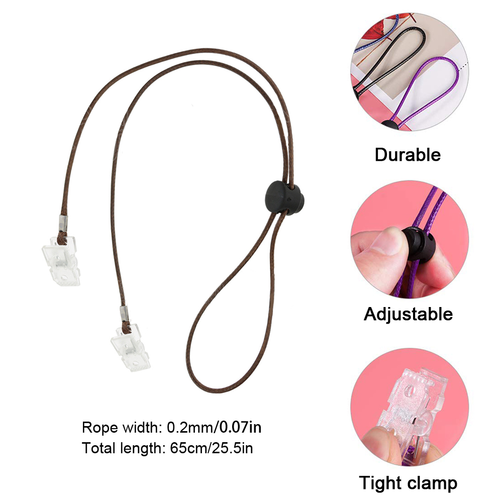 ☑ Adjustable Rope Napkin Holder: The total length of our neck chain is about 65cm/25.6in, folded size about 32.5cm/12.8in. You can adjust the napkin clip through the black fixed bead, to the appropriate position you wanted, fitting for most people.