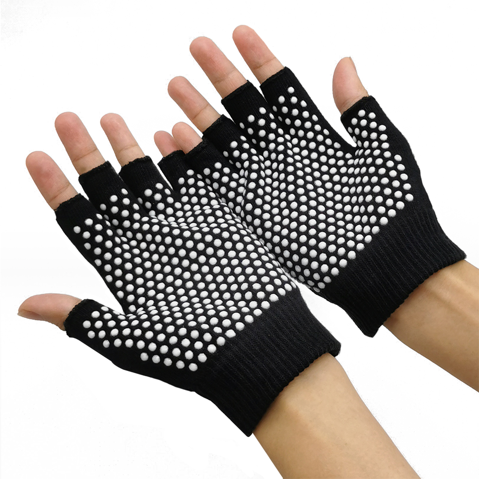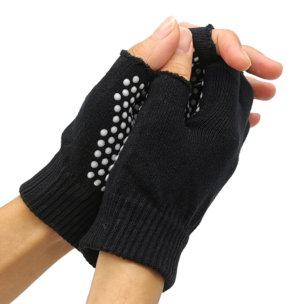 ⤠Package Included: 1 pair Yoga gloves. Material: 75% Cotton 22% Polyester 3% Spandex. Color: Black.