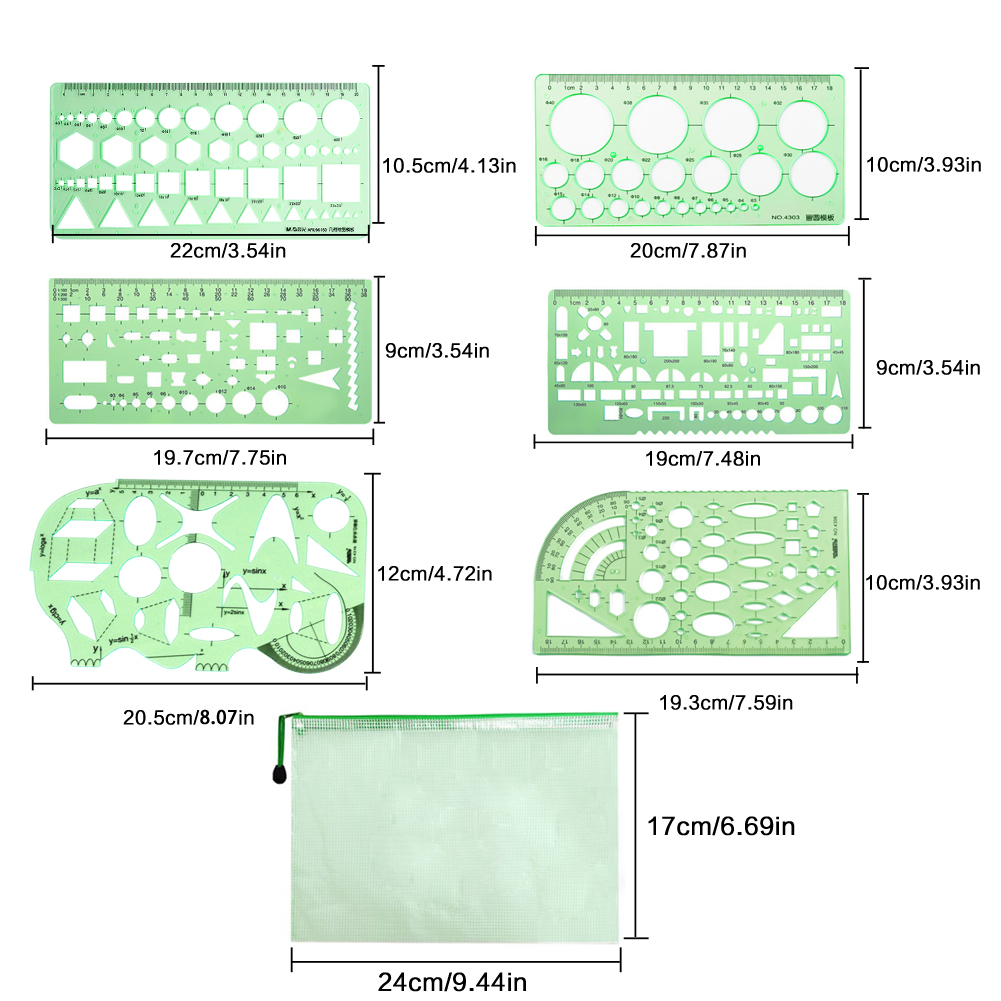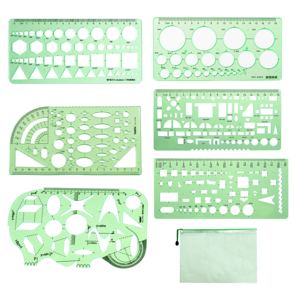 📠Ensemble de Dessin de Pochoirs: Voici 6 modèles de dessin d'architectes différents et une enveloppe à fermeture à glissière en PVC dans un paquet. Chaque gabarit de gabarit de dessin comporte plusieurs motifs. Vous pouvez les utiliser pour dessiner de nombreux motifs différents. Il comprend les cercles, les carrés, les rectangles, les triangles, les diamants, les ovales, etc.