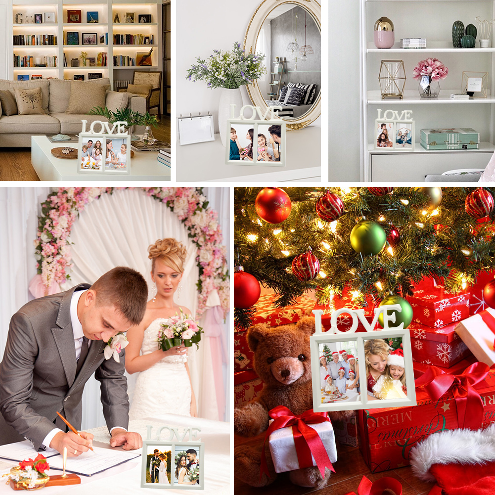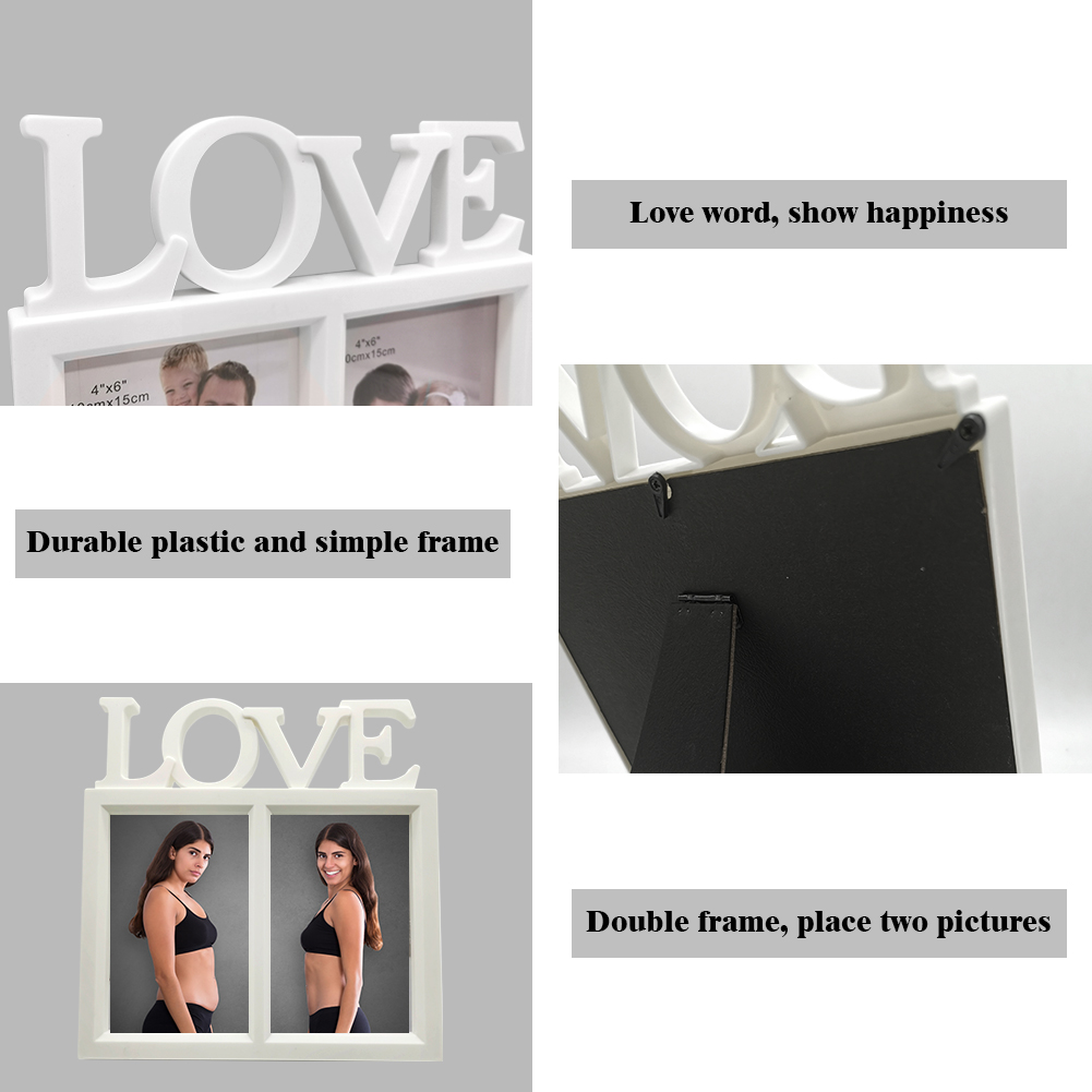 ♥ Love Picture Frames 6x4: Note: For kids' safety reason, it is not made of glass, but made of clear plastic film. Displaying double photo frame 6x4 is with letter LOVE on the top, simple but full of love, great for holding personal photos, wedding photos, family photos, best friend photos etc., showing and keeping the significant or honey moment.