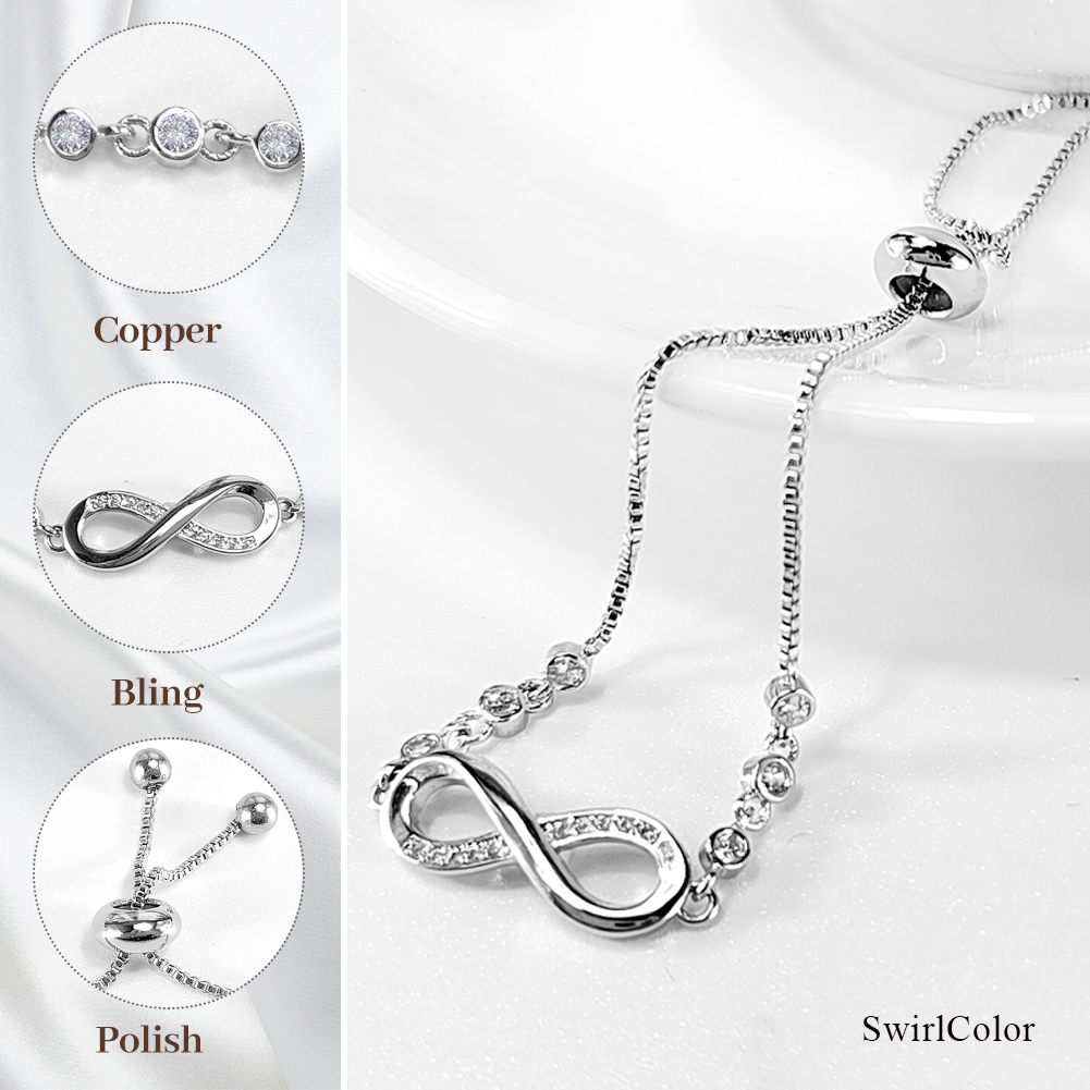 ღ Elegant & Attractive: Silver infinity bracelet, inserted with cubic circonia and of decorative beads, chic and elegant, great to show women's fascination. SwirlColor Infinity Bracelets