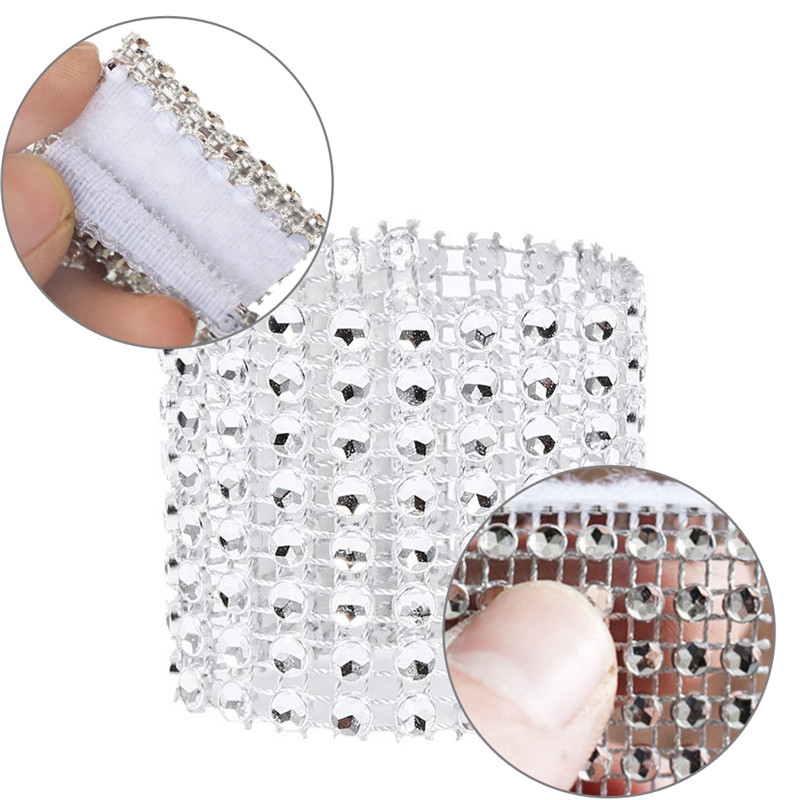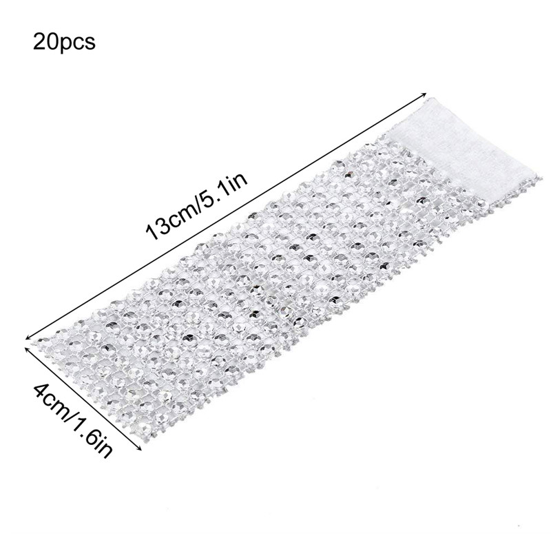 ☆Specifications:☞Material: Plastic.☞Color: Silver.☞Size: Approx 5.1x1.6inch(13x4cm).☞Package Included: 20* Rhinestone napkin rings/ 1 set, without napkins.