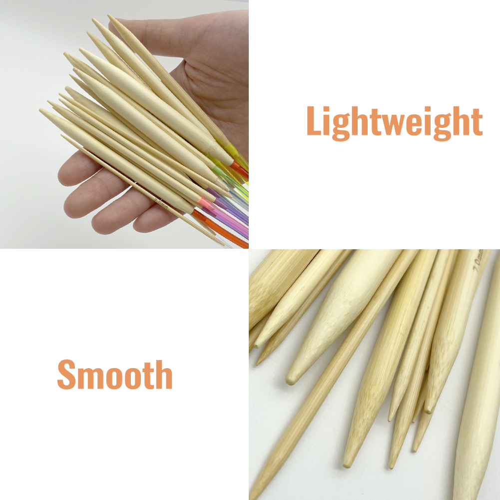 â Wood Material: The double pointed knitting needle is made of wood, lightweight and smooth, so bamboo knitting needle won't hook or tear the yarn when weaving.