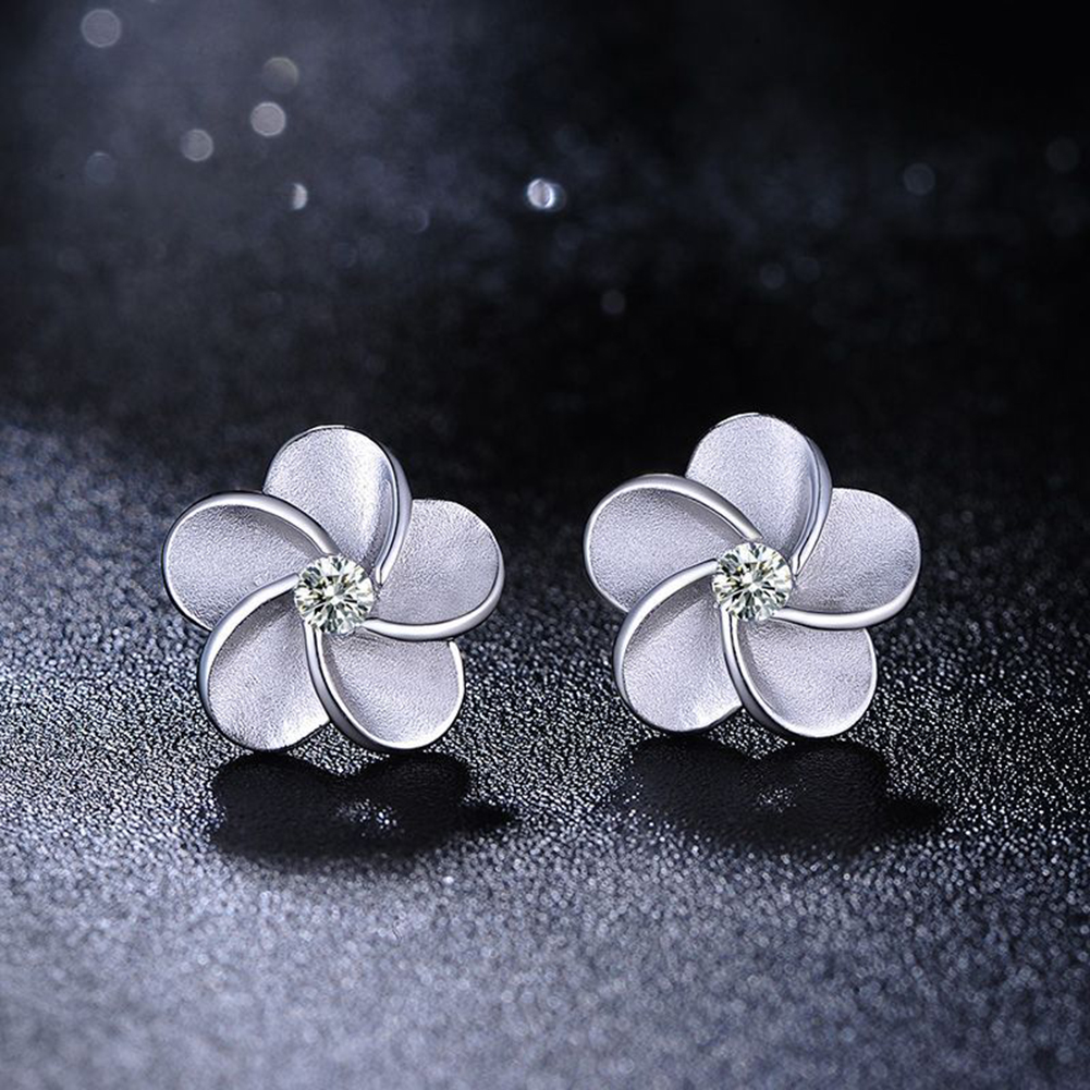 â£â£ Stylish Lady Earrings: This flower stud earrings sterling silver has five full bloomed plumm petals and a silver rhinestone flower heart. The popular design can show off your chic side.