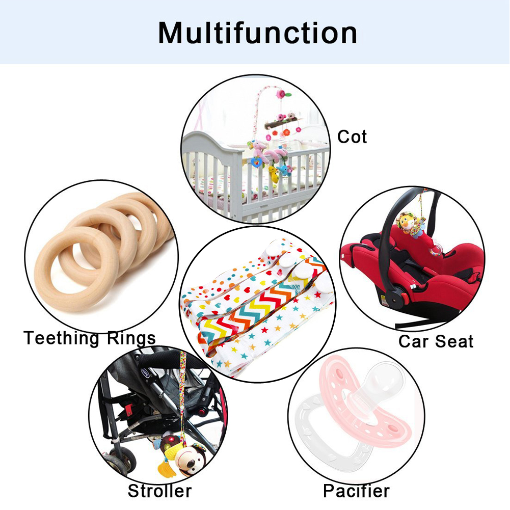 💚 Versatile Uses: Baby accessory clips can hold toys, dolls and teething rings perfectly near your baby to keep them clean and sterile. For strollers, highchairs, car seats, shopping carts, and cot. What a multifunctional pram strap.
